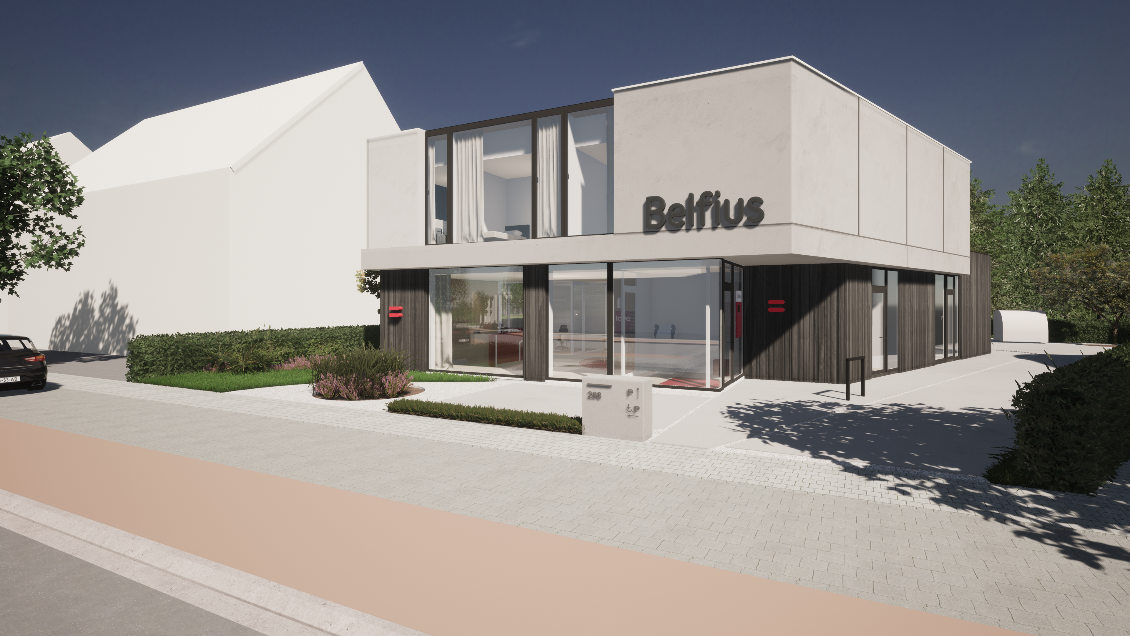 Een nieuw kantoor voor Belfius, gecombineerd met een appartement, op maat van vandaag.