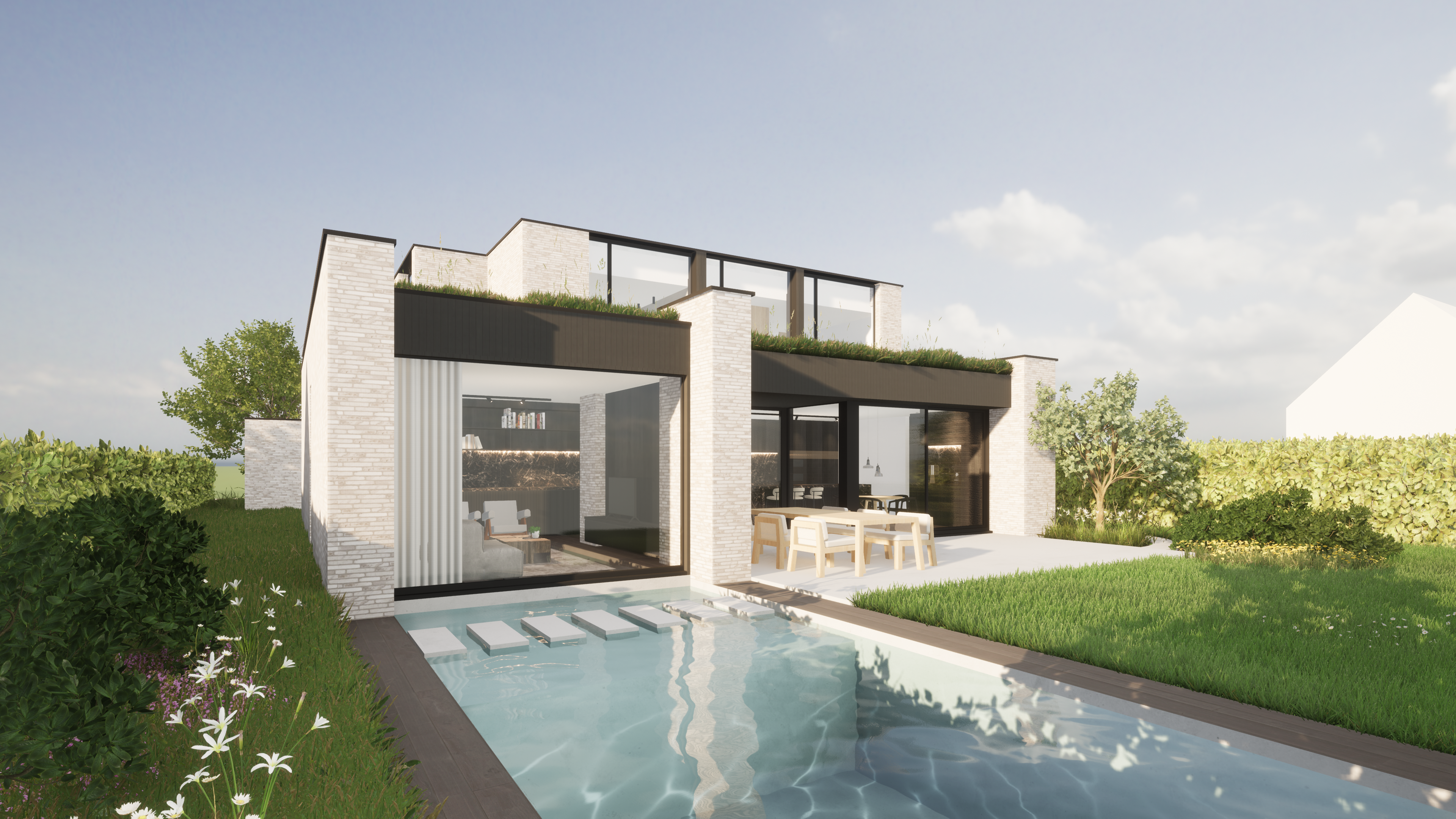 Een moderne gezinsvilla waar architectuur, interieur en buitenruimte naadloos op elkaar inspelen.