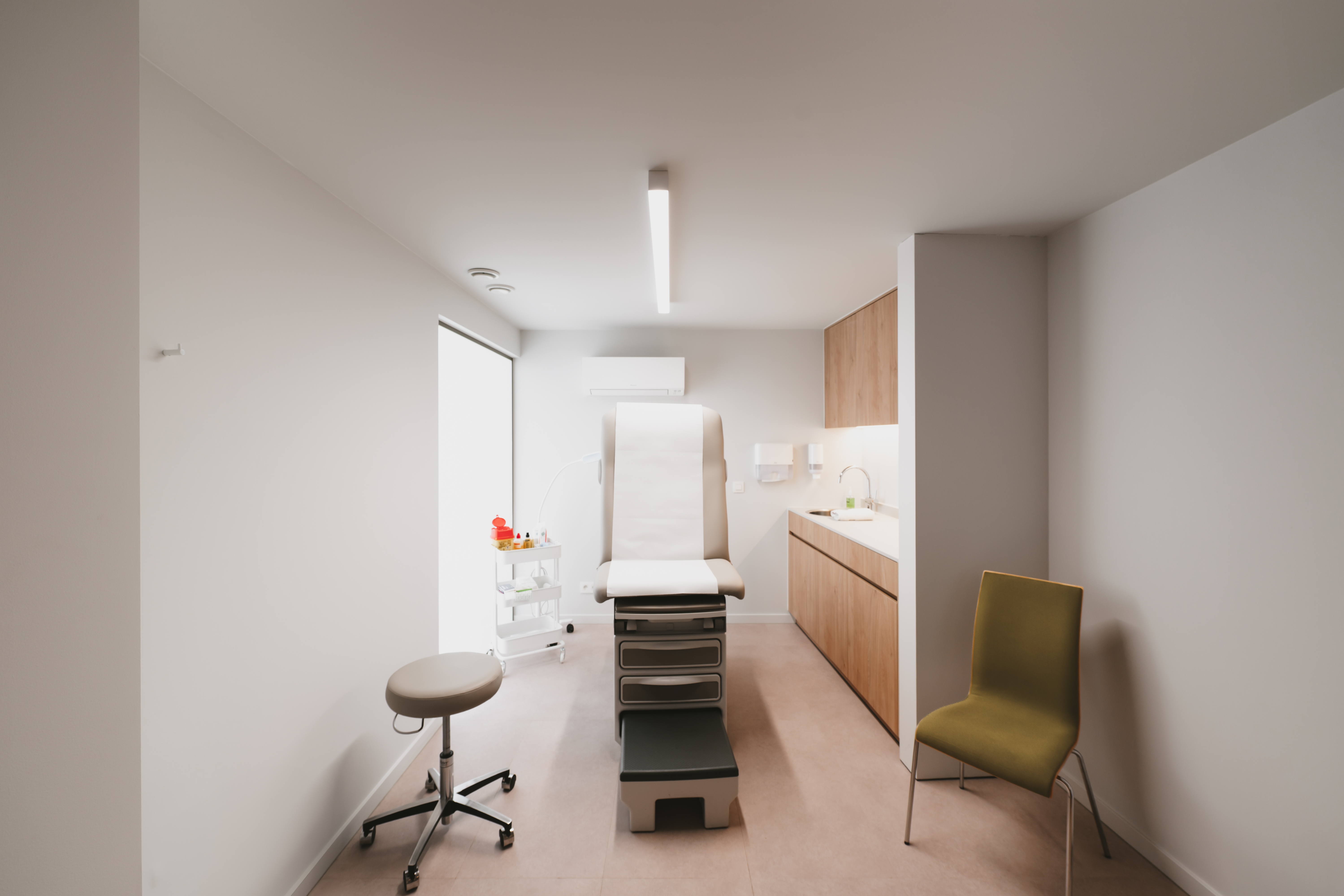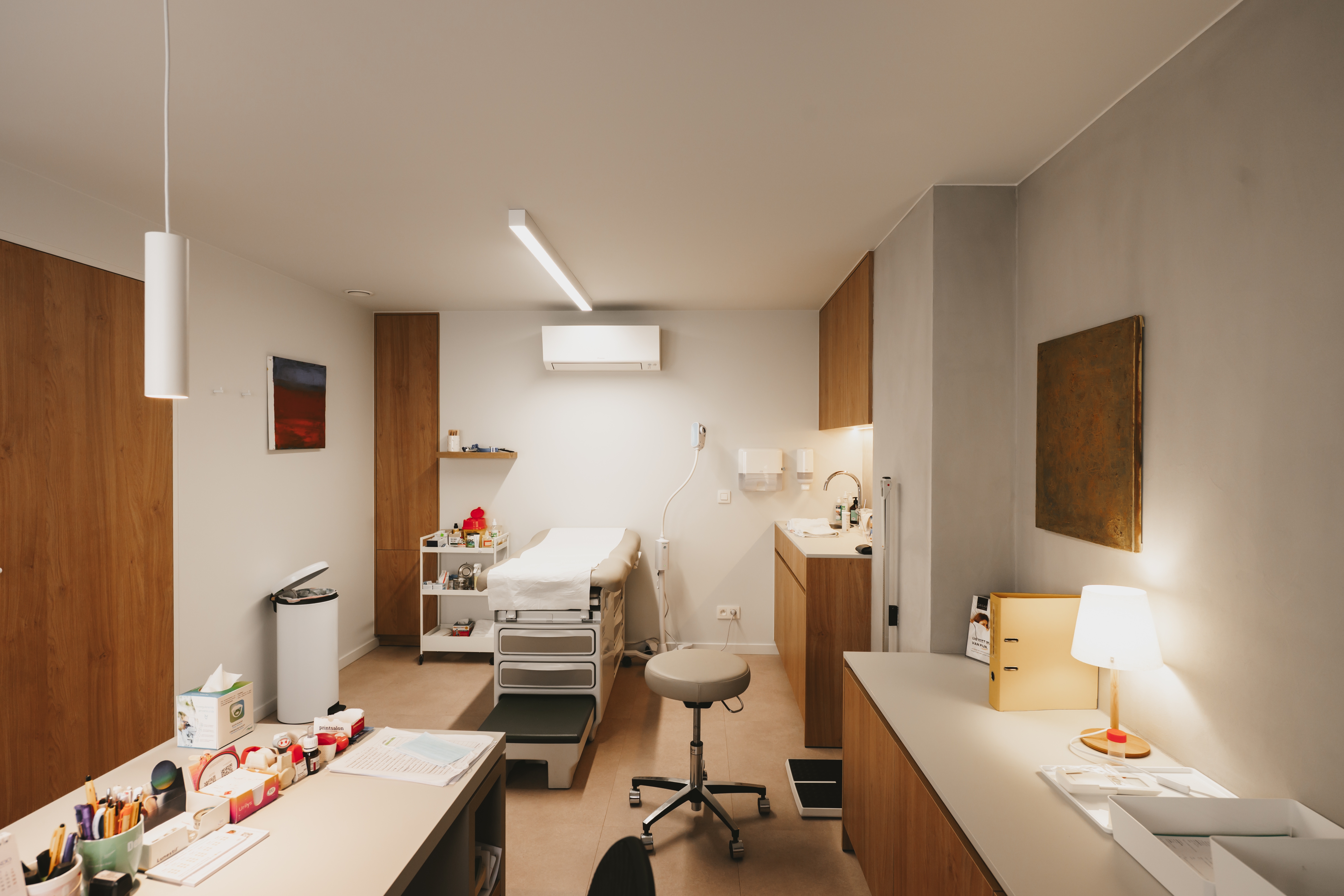 Elke ruimte is ontworpen met maximale efficiëntie en comfort voorop. De kabinetten zijn functioneel en licht, en beantwoorden aan de specifieke noden van het zorgteam. Daarnaast voorzagen we een labo, apotheekruimte en een discrete, maar aangename lunchplek voor de artsen.