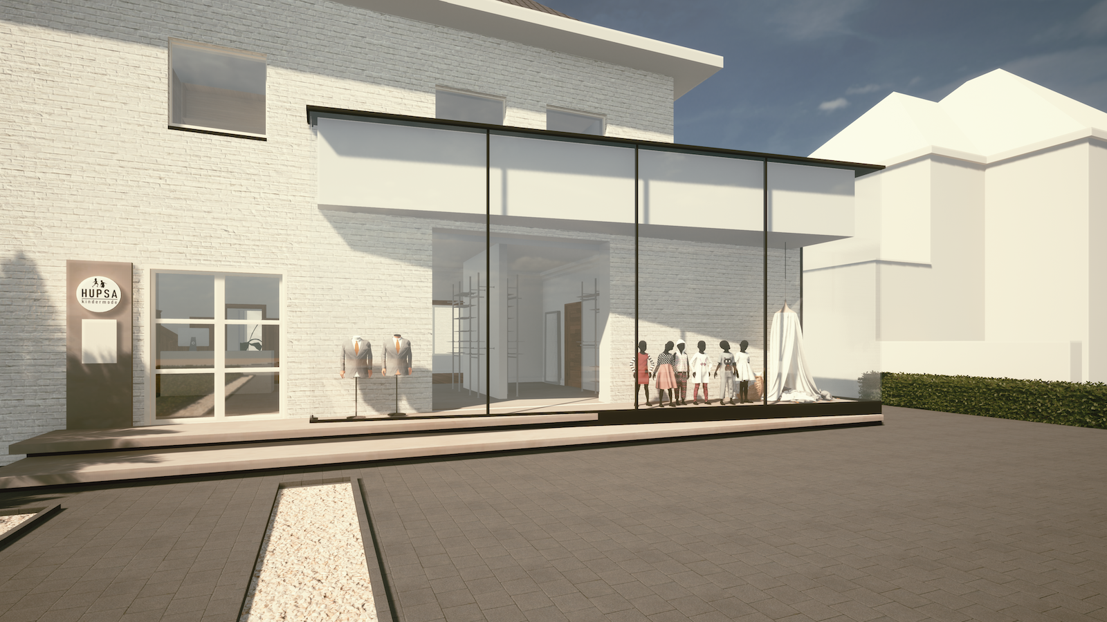 Voor dit project vormden we het gelijkvloers van een bestaande woning om tot een winkel voor kinderkleding. Met een opvallende uitbouw en een slimme inrichting maken we van een vertrouwde plek een commerciële ruimte met eigenheid. De bovenverdieping werd ingericht als wooneenheid voor de uitbaters — werken en wonen op één plek.
