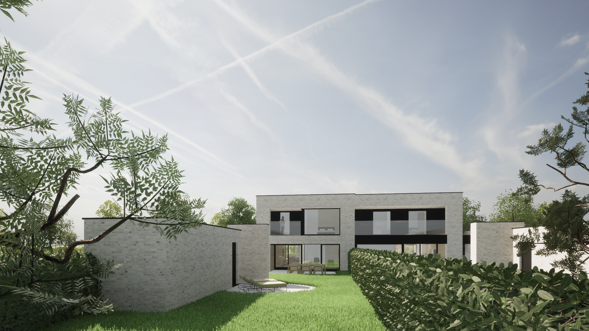 De woningen werden niet als twee losstaande entiteiten ontworpen, maar als één geheel. De overgangen tussen de volumes zijn subtiel, waardoor het geheel aanvoelt als een ruime, moderne villa.