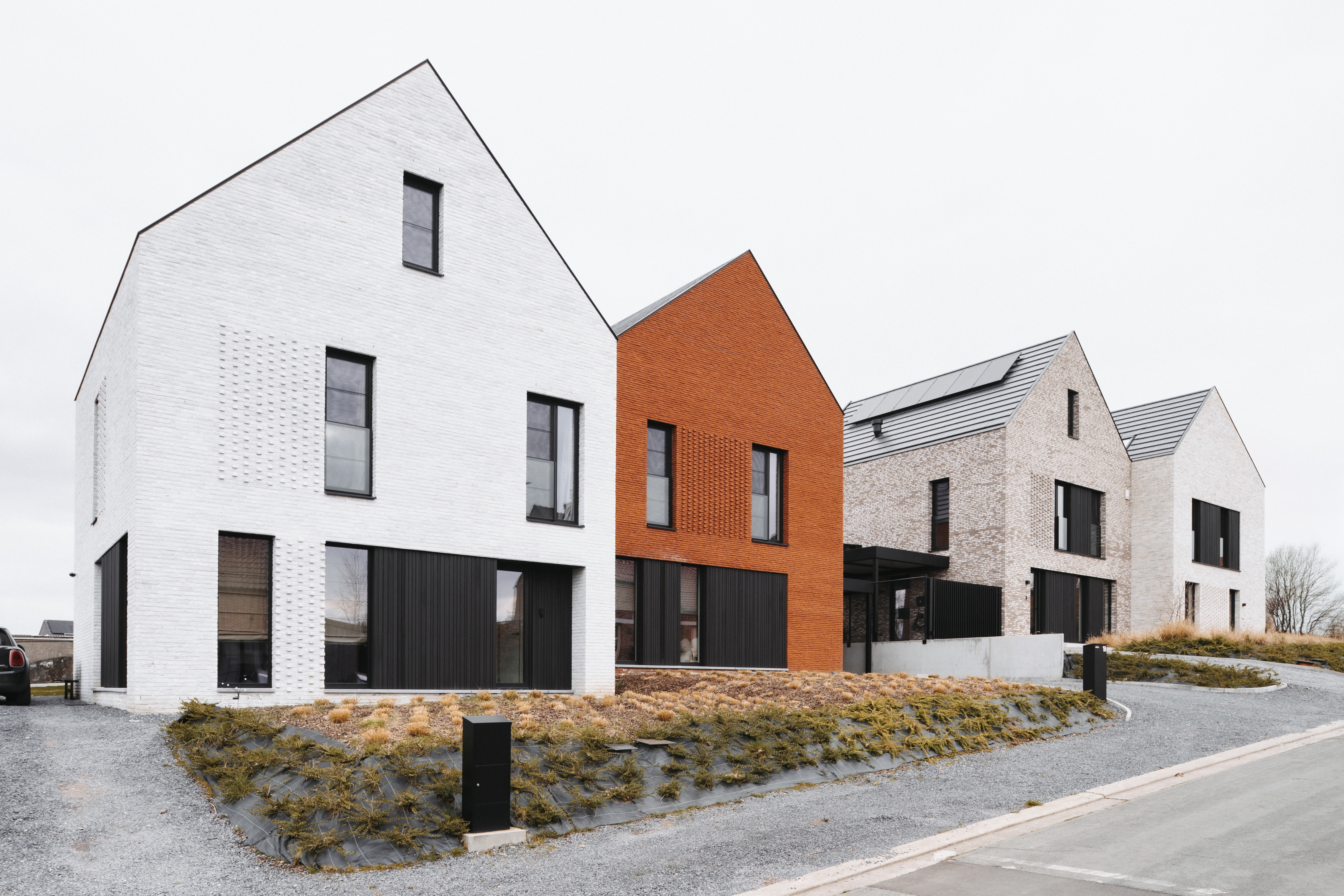 De architectuur van de woningen kenmerkt zich door zadeldaken die haaks op de straat staan. Deze opbouw geeft het straatbeeld een duidelijke identiteit en zorgt ervoor dat de woningen als afzonderlijke ‘huisjes’ aanvoelen. Dit versterkt de kleinschaligheid en maakt het project menselijk en toegankelijk.